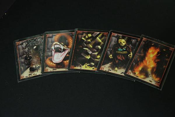 *遊戲中的災難卡,若重複翻出2或3次,該回合即結束。