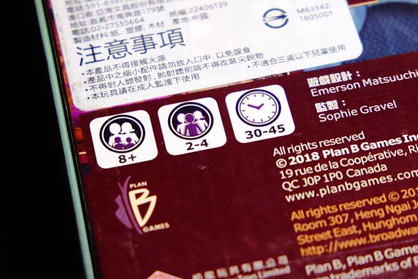 △這款遊戲適合2-4位玩家,8歲以上就可以玩,時間也不長,30分鐘左右。