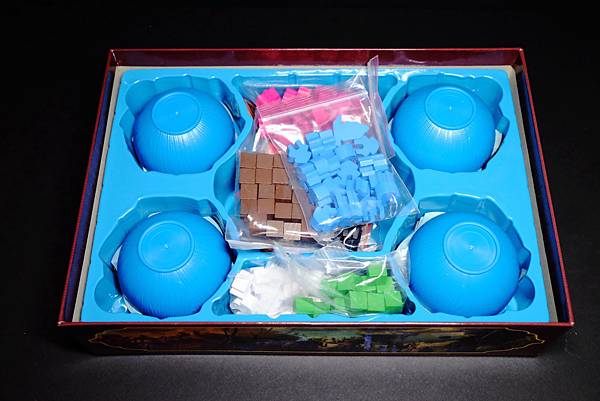 △這款遊戲的收納基本上除香料木塊外,每樣配件都有他自己的收納位置,設計得還不錯。