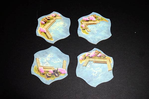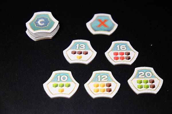 △遊戲的得分標記,會隨機放在港口板塊上。最上面就是會讓港口關閉的標記。