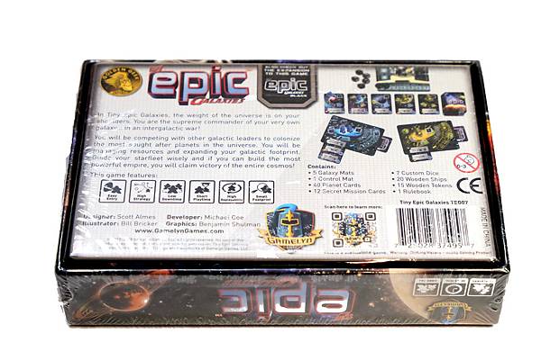 如果是對桌遊世界有一些瞭解的朋友,應該都會知道這家出版社真的非常厲害,你到全球最大的桌遊網站BGG上搜尋Tiny Epic,就會發現一拖拉庫的遊戲,如史詩小王國、史詩小銀行、史詩小西部、史詩小任務、史詩小殭屍…而且排名都不錯,很受到玩家喜愛。這出版社出的tiny epic系列遊戲都有一個特點,就是遊戲都是小小的一盒,但是遊戲性及策略性卻沒有因此降低,這次要介紹的這款史詩小銀河,就是這系列遊戲中排名最前面的一款,目前在BGG網站全球桌遊排名240,策略遊戲第191。(BGG連結:https://boardgamegeek.com/boardgame/163967/tiny-epic-galaxies)