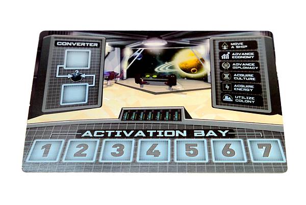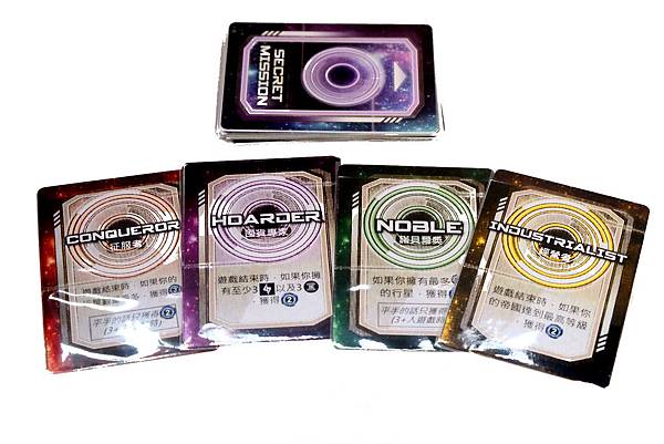 1.在玩家圖板上設置起始的帝國等級是1,2點能源以及1點文化,拿取2艘飛船還有1張秘密任務卡(結算時若達成了目標,則額外加分)