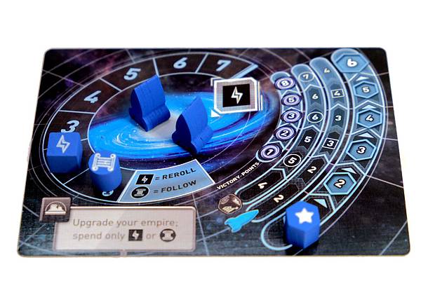 3.小盒遊戲卻有大盒策略應該是對這款遊戲最好的形容,遊戲中你可以發射太空船探險、征服星球、獲得能源、升級帝國等級、啟動殖民地能力,很多行動可以選擇,但動作之間是順暢的,而且環環相扣,例如要獲得能源才能升級帝國等級,升級帝國等級才能增加太空船及骰子數量,太空船及骰子數量多你就可以佔領更多的星球及執行行動,而星球卡又是分數的主要來源,所以在策略上無法讓你走某一個單一路線,不同路線也都有分數,遊戲過程中需要適時評估你的發展方向,才能讓你的帝國發展順暢。