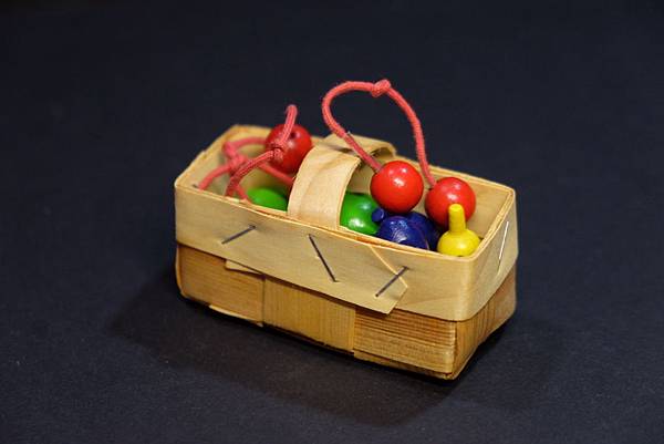 ∆遊戲裡使用的骰子,4種水果顏色各一面,另外2面是水果籃及烏鴉。