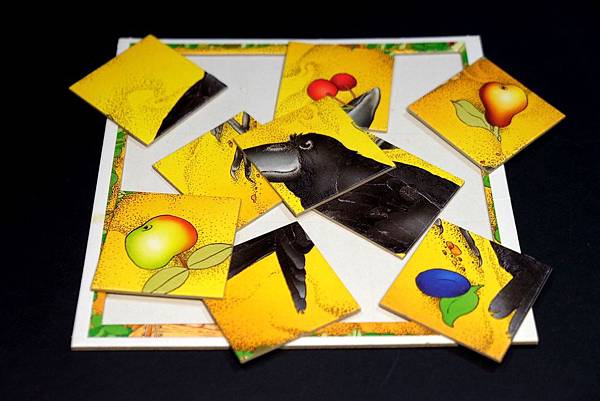 3.烏鴉果園這個遊戲個人覺得還不錯,可以訓練小孩對水果、顏色、拼圖的認知,還可以訓練依序玩遊戲的概念,重要的是可以增進親子歡樂的時光,所以有興趣的父母,如果現在還買的到,趕快也去敗一套吧!!