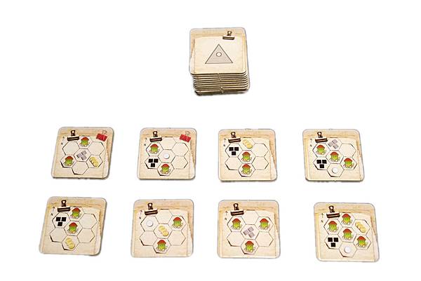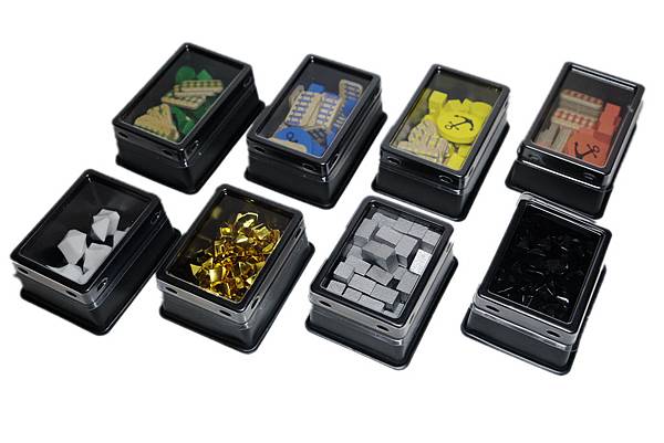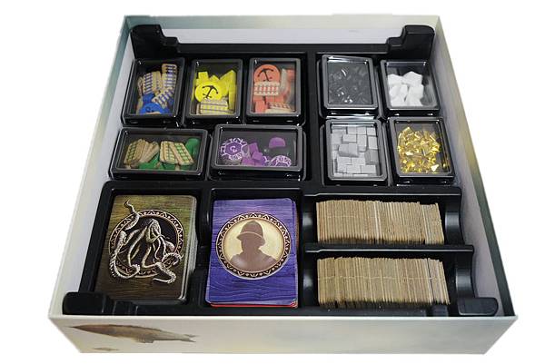 1.首先不得不稱讚這款遊戲的收納設計,跟其他桌遊比較起來,這遊戲的收納可以算100分,每種配件都有專屬的收納處,而且是設計成一盒一盒的,所以玩家們只要把收納盒拿一拿,圖版設置一下就可以開始遊戲了,完全不需再另外買收納盒或是找一些透明小袋子來裝配件,簡直就是佛心來的。