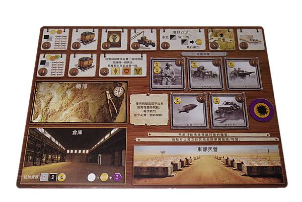 ∆玩家面板是雙面的,對應你使用的地圖圖板,一面是東部,一面是西部。