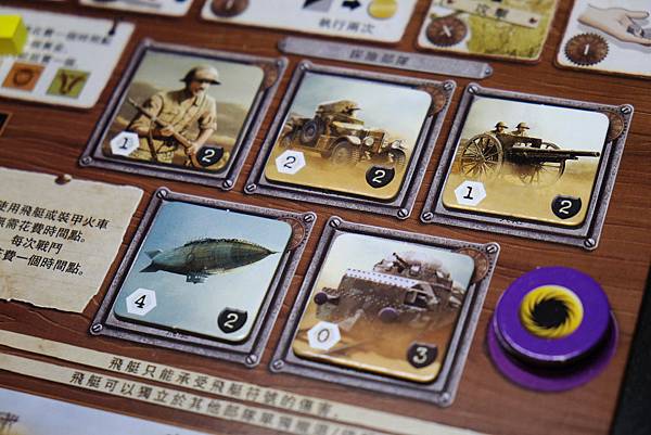 (3)購買軍事單位:軍事單位花費顯示於玩家板塊上;一次只能購買一個軍事單位,步兵可購買最多兩個軍事單位,但需多支付1個黃金來購買。